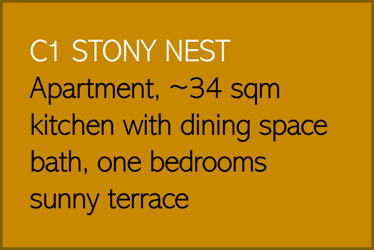 Top 5 STONY NEST is a beautiful ground floor flat in the listed tower with a historic ambience. There is a  kitchen with dining area, a separeted living-/bedroom (bedsize: 140x200) with wardrobe and desk and a small bathroom . The stony terrace and the small garden offer unique views!